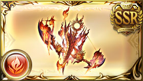 When main weapon (MC only): When MC’s HP is 50% or above after normal attacks: 6-hit, 100% Fire damage to a foe (Damage cap: ~140,000 per hit). Raise foe’s Singed (Accuracy: g, 180s) lvl by 1. |